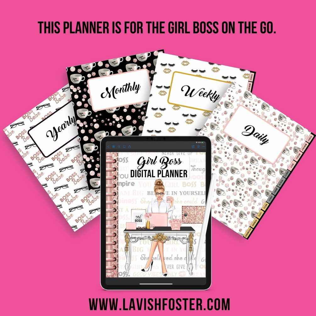 - 1 yearly page, 12 monthly pages, 5 weekly pages, 7 daily pages, 5 habit pages, 5 health pages, 12 Monthly Budget pages, 5 Revenue Tracker pages, 5 Expense Tracker pages, 1 Goals Planner page, 1 My Goals pages, 3 Notes pages and 3 list pages, 1 Ideas page, 1 vendor page, 2 password pages