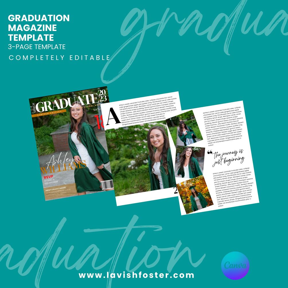 Graduation magazine template, Senior invite, Senior grad template, Graduation magazine template, Senior template, Graduation canva template