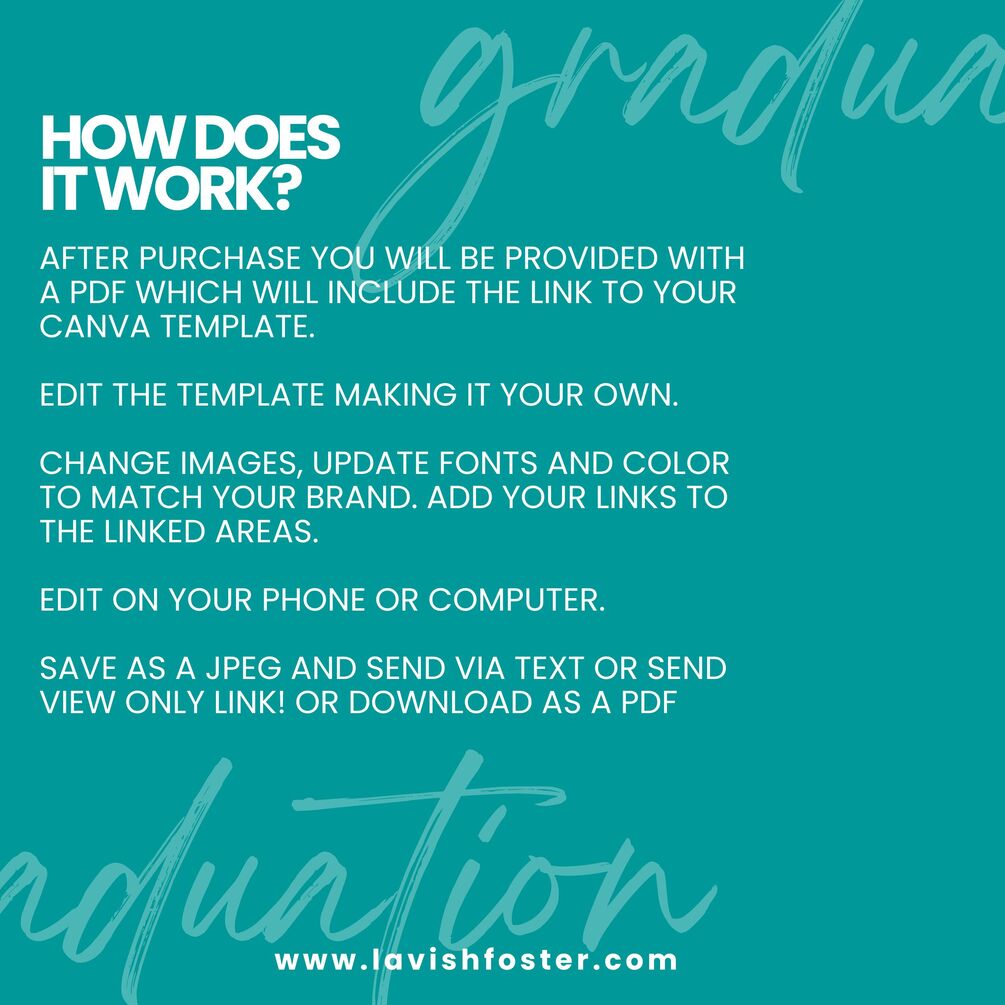 Whether you're creating a graduation magazine to share with friends and family, or a senior invite to invite loved ones to the big day, this template is sure to impress.